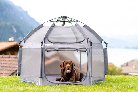 Das mobile Hundelaufgitter von PETY lässt sich dank seiner innovativen Funktion ganz einfach und in wenigen Schritten auf- und abbauen.